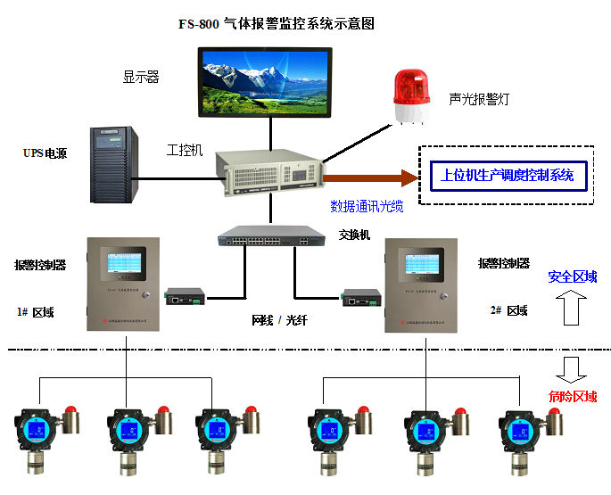 FS800氣體報警集中監控軟件可實現公司各區域的氣體報警儀監測信號得以有效地管理和監視,實現報警檢測數據的記錄和查詢功能,對氣體泄漏的時間、地點和數值實現全天監控,并可將數據發送至公司生產調度中心,在生產調度中心對全公司氣體檢測信號進行監控,從而使生產更加安全可靠。